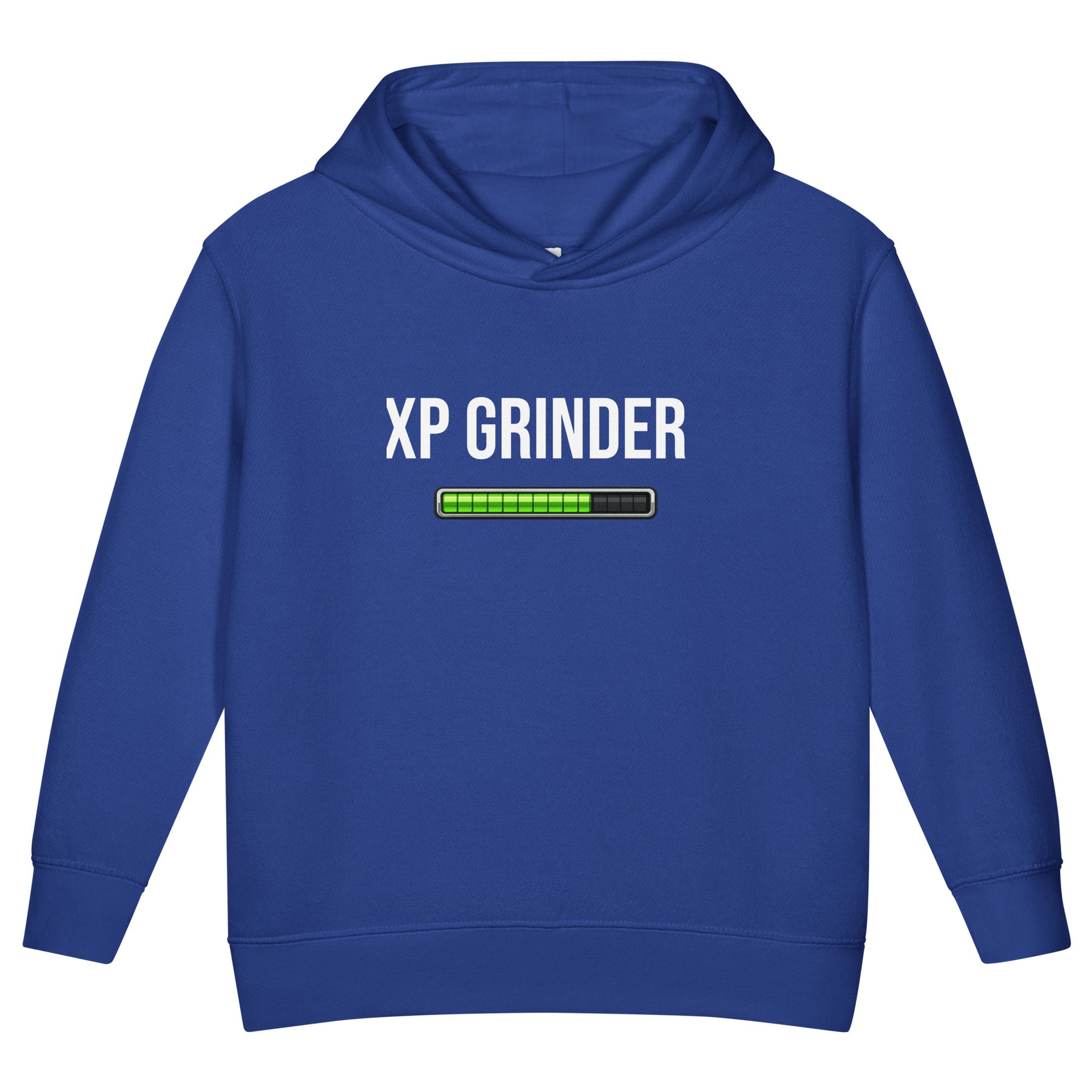 XP Grinder Toddler fleece pullover hoodie blue with progress bar graphic.