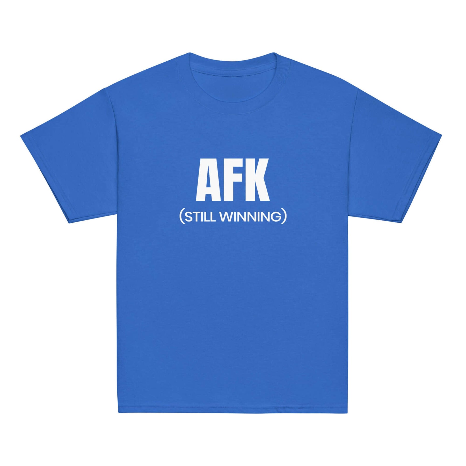 AFK Youth classic tee in blue color featuring bold text "AFK (STILL WINNING)" for kids' casual wear.