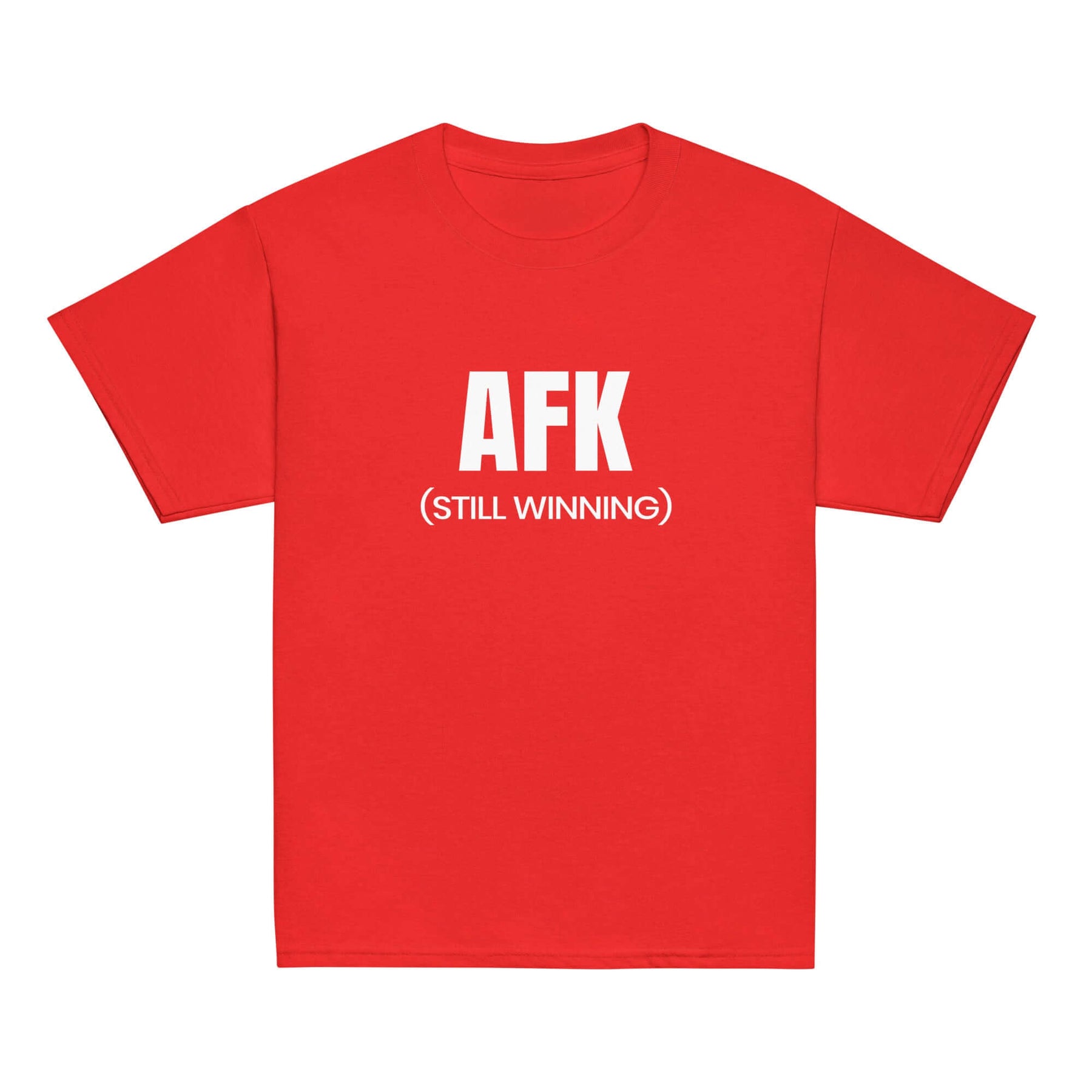 AFK Youth classic tee in red featuring the text AFK (STILL WINNING) for kids' stylish casual wear.