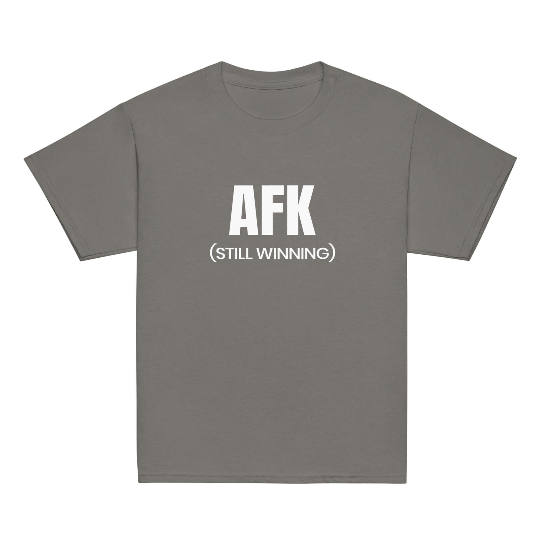 AFK Youth classic tee in Sport Grey color with 'AFK (STILL WINNING)' text design.