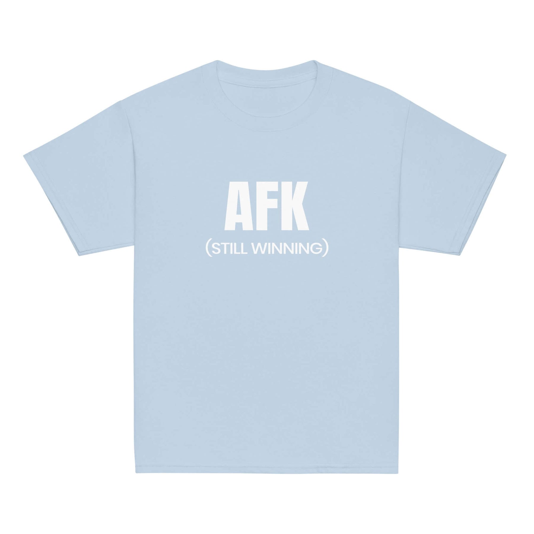 AFK Youth classic tee in light blue featuring AFK (STILL WINNING) design on the front.