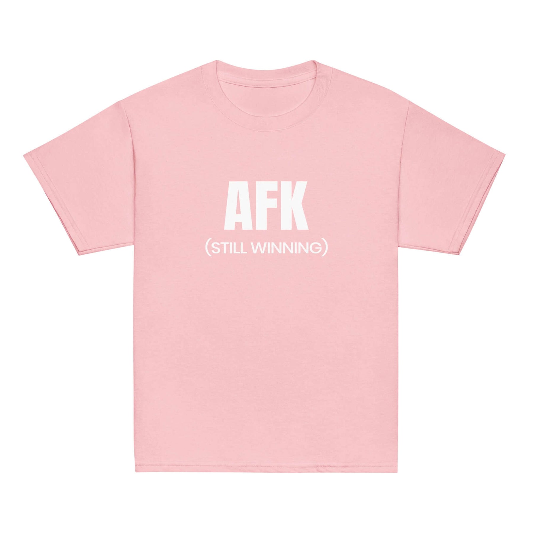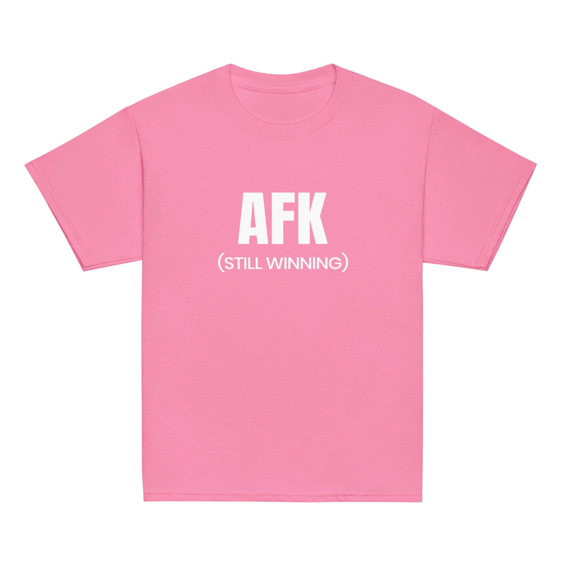 AFK Youth classic tee in pink with AFK (STILL WINNING) text for kids' casual wear